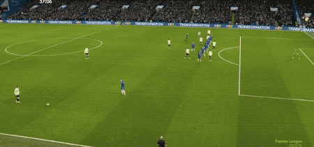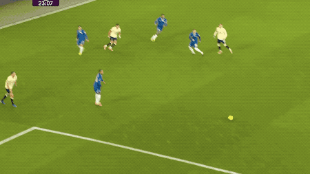 第55分钟,桑切斯送出长传,加纳乔利用速度甩开奥布莱恩,直面皮克福德,但最后的射门却打高了。